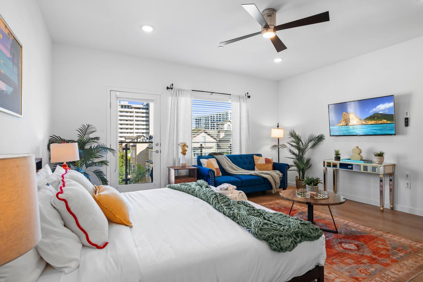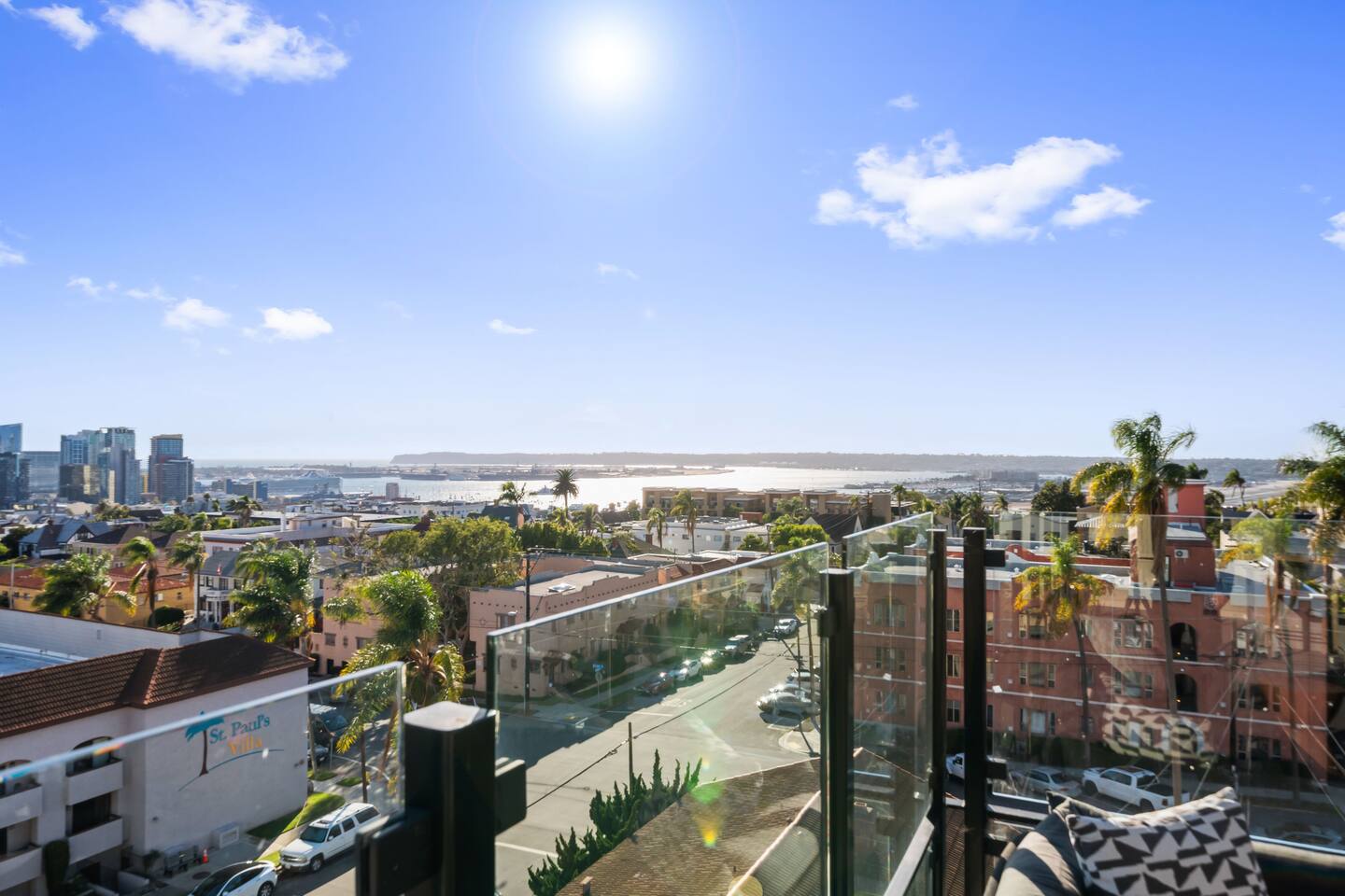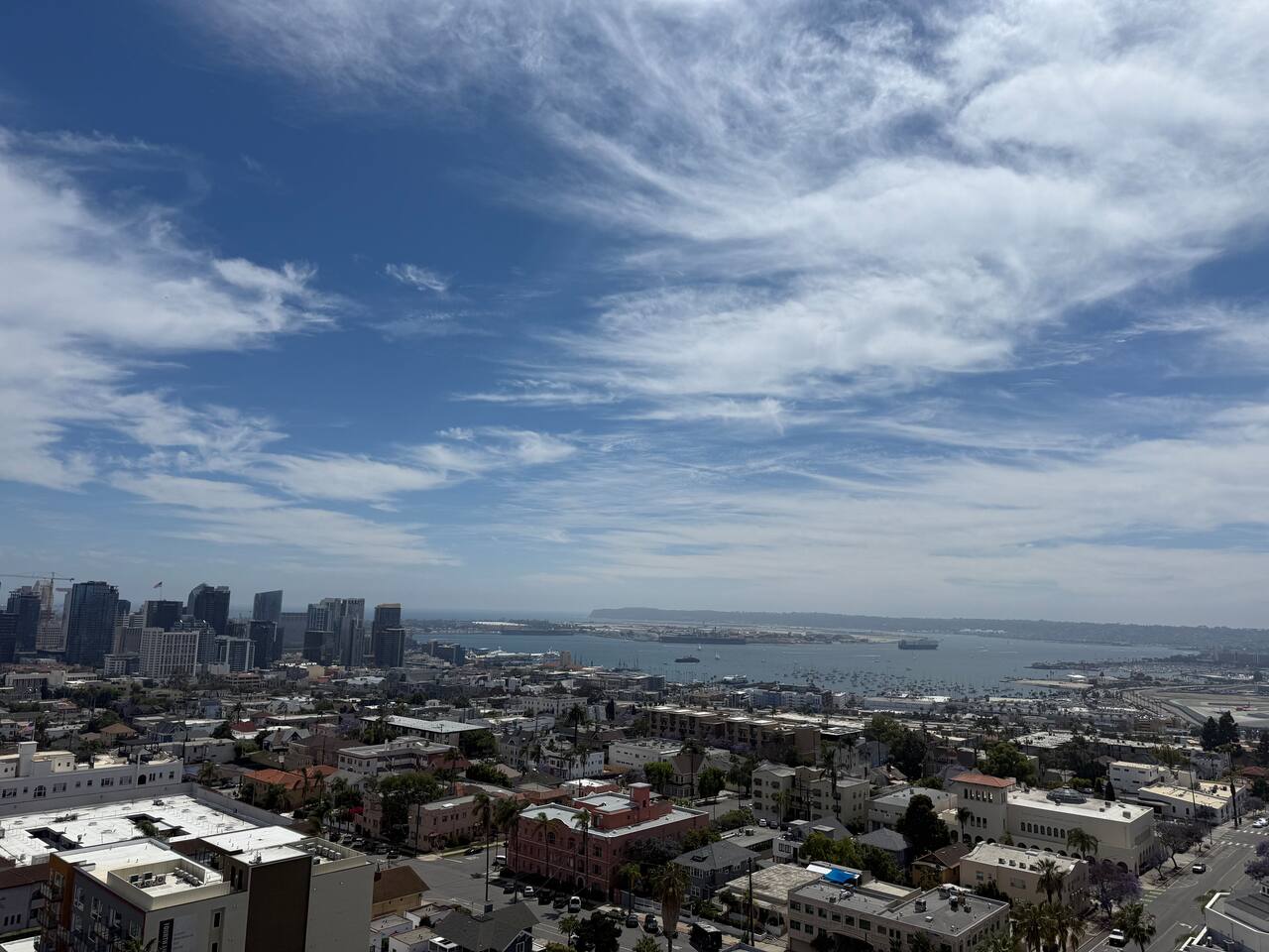 Welcome to this modern Brand New top-floor studio with stunning city and ocean views in a prime central location. Relax on a plush king bed (plus a twin), stream your favorites on the Smart TV, or work remotely with blazing-fast fiber Wi-Fi. Enjoy rooftop sunsets. Walk to Balboa Park, cafés, and restaurants. Minutes to Gaslamp, beaches, airport, hospitals, and convention center. Quiet, secure building with keyless entry. 🅿️ FREE PARKING IN NEARBY PRIVATE LOT 1 BLOCK AWAY (UPON REQUEST)