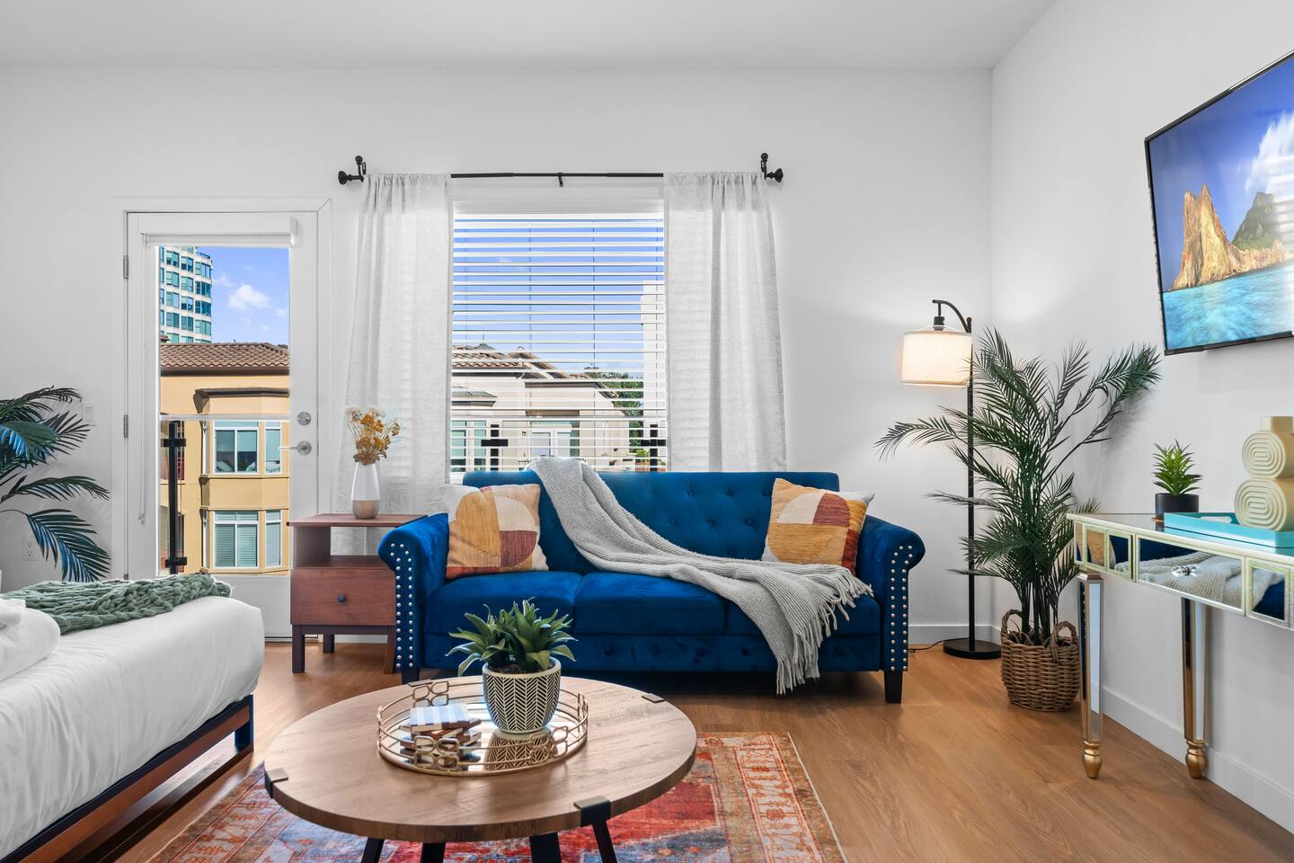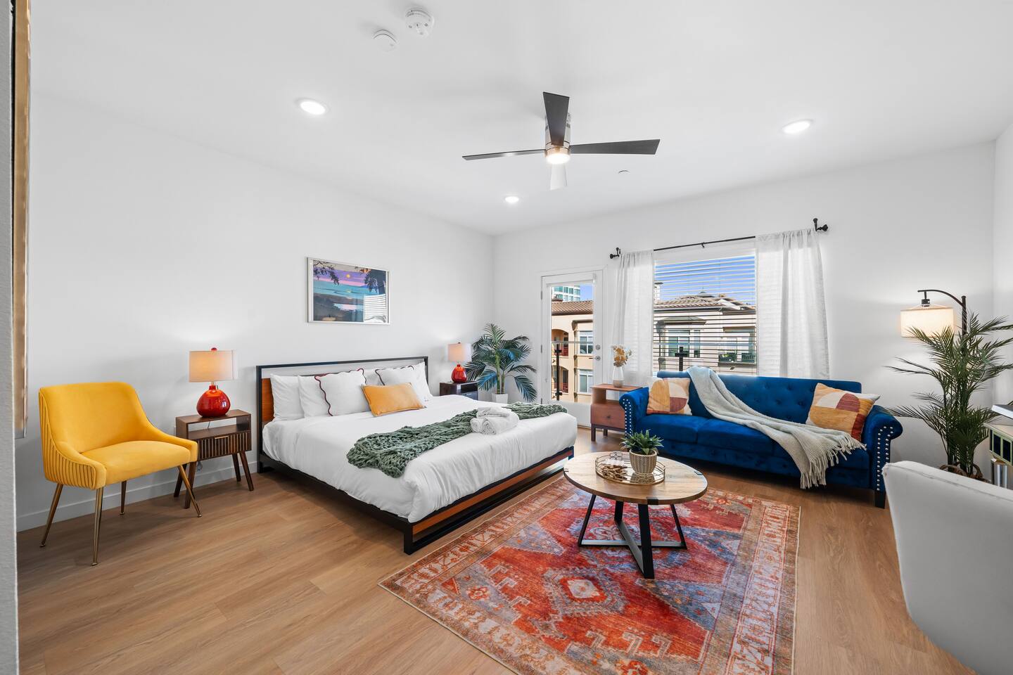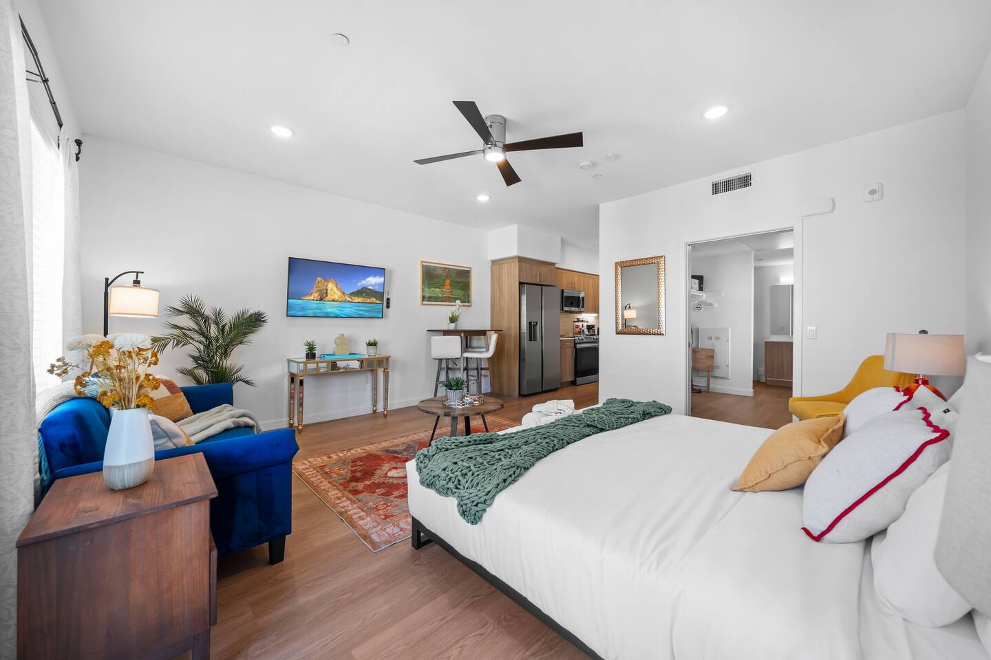 Welcome to this modern Brand New top-floor studio with stunning city and ocean views in a prime central location. Relax on a plush king bed (plus a twin), stream your favorites on the Smart TV, or work remotely with blazing-fast fiber Wi-Fi. Enjoy rooftop sunsets. Walk to Balboa Park, cafés, and restaurants. Minutes to Gaslamp, beaches, airport, hospitals, and convention center. Quiet, secure building with keyless entry. 🅿️ FREE PARKING IN NEARBY PRIVATE LOT 1 BLOCK AWAY (UPON REQUEST)