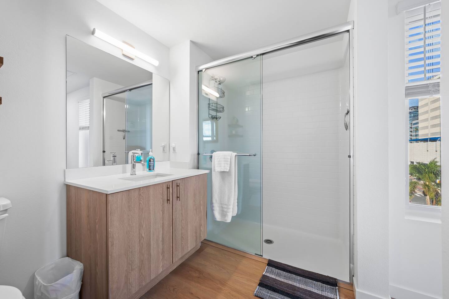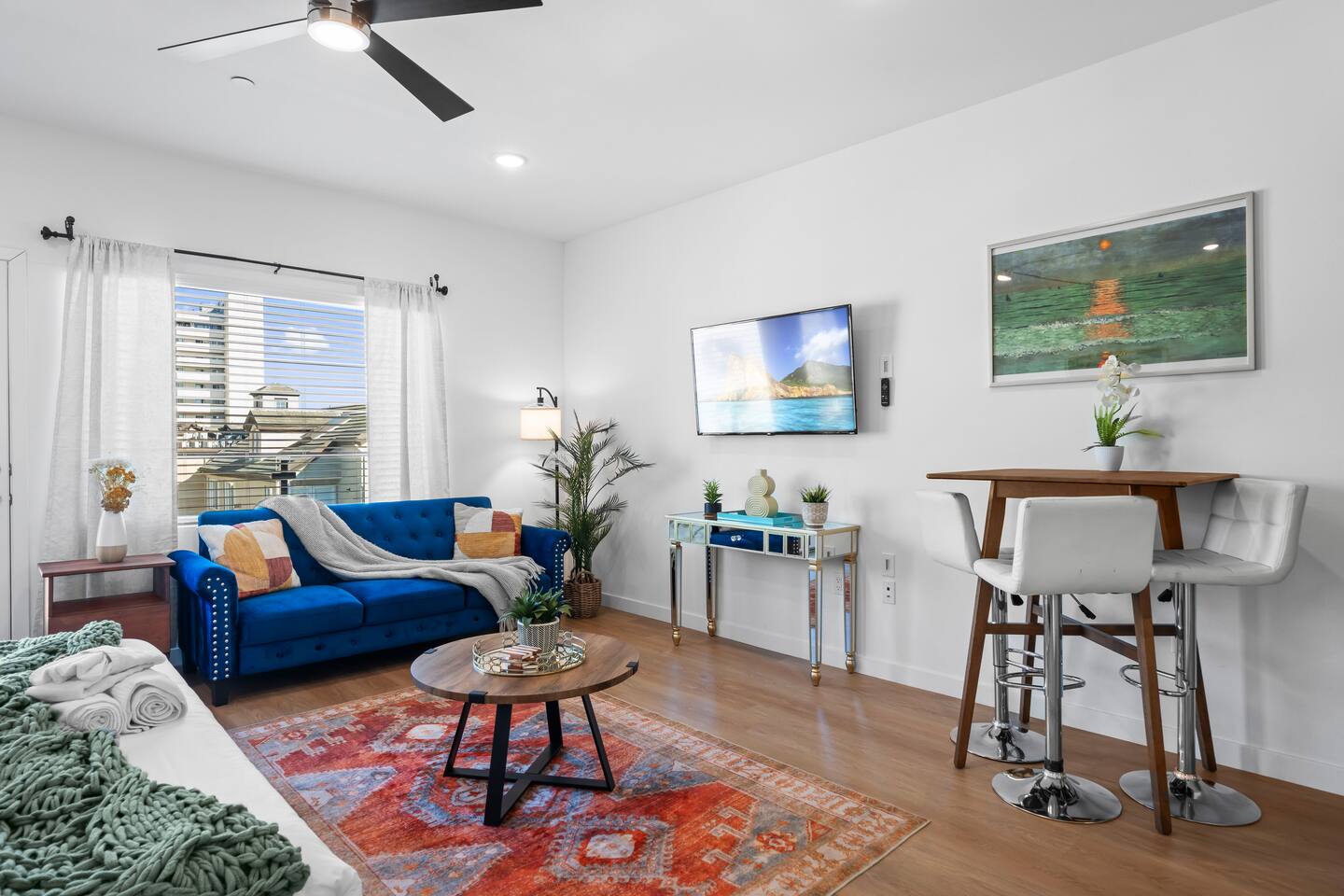 Upscale New Luxury Building — New Top Floor Studio in the heart of Bankers Hill — where modern comfort meets unbeatable location and stunning city-to-ocean views. Perfect for solo travelers, couples, and business guests, this thoughtfully designed space offers everything you need for a stylish and seamless San Diego stay in one of the city’s safest, most walkable neighborhoods. 💬 Why Guests Love It Here "The place was amazing! Beautifully decorated, clean and everything looked like new" “Perfect location — close to everything.” "This was an absolutely perfect place if you want to be able to explore downtown San Diego and little Italy" “One of our favorite stays ever. We'll be back!” “Spotless, stylish, and super quiet. Loved the laundry and kitchen setup.” “This is the epicenter of the 20-minute city. It’s all right here.” "The actual room was even better than the photos, sooo clean and cozy" 🛏 Plush king bed + extra twin for added flexibility 🛋 Lounge area, Smart TV, and fully equipped kitchen 💻 Blazing-fast fiber Wi-Fi and dining table, with foldable desk perfect for remote work 🌞 Top-floor unit with natural light and modern finishes ✔️ Superhost status — praised for cleanliness, location, and communication ✔️ In-unit washer & dryer ✔️ Free courtesy parking (private lot, available with advance notice in nearby lot a block away) Street parking all around the area ✔️ Secure, keyless entry to building and unit 🏙 Rooftop Lounge Access Don’t miss the shared rooftop with BBQ, comfy seating, and panoramic city and ocean views — perfect for morning coffee or evening wine. 📍 Unmatched Location Walk to Balboa Park, Little Italy, cafes, restaurants, and more. Minutes to Gaslamp, the airport, beaches, hospitals, and the convention center. 🐾 Pet-Friendly One small, well-behaved pet (under 25 lbs) is welcome with a fee. Pet must be house-trained, kept off furniture/bedding, never left unattended, and leashed in all common areas.